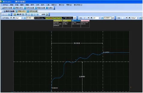 實(shí)測LM7805的輸出電壓建立曲線,如圖 1所示,可知輸出電壓的建立時(shí)間較長,達(dá)39mS,且在電壓上升過程中,輸出電壓會(huì)振蕩。