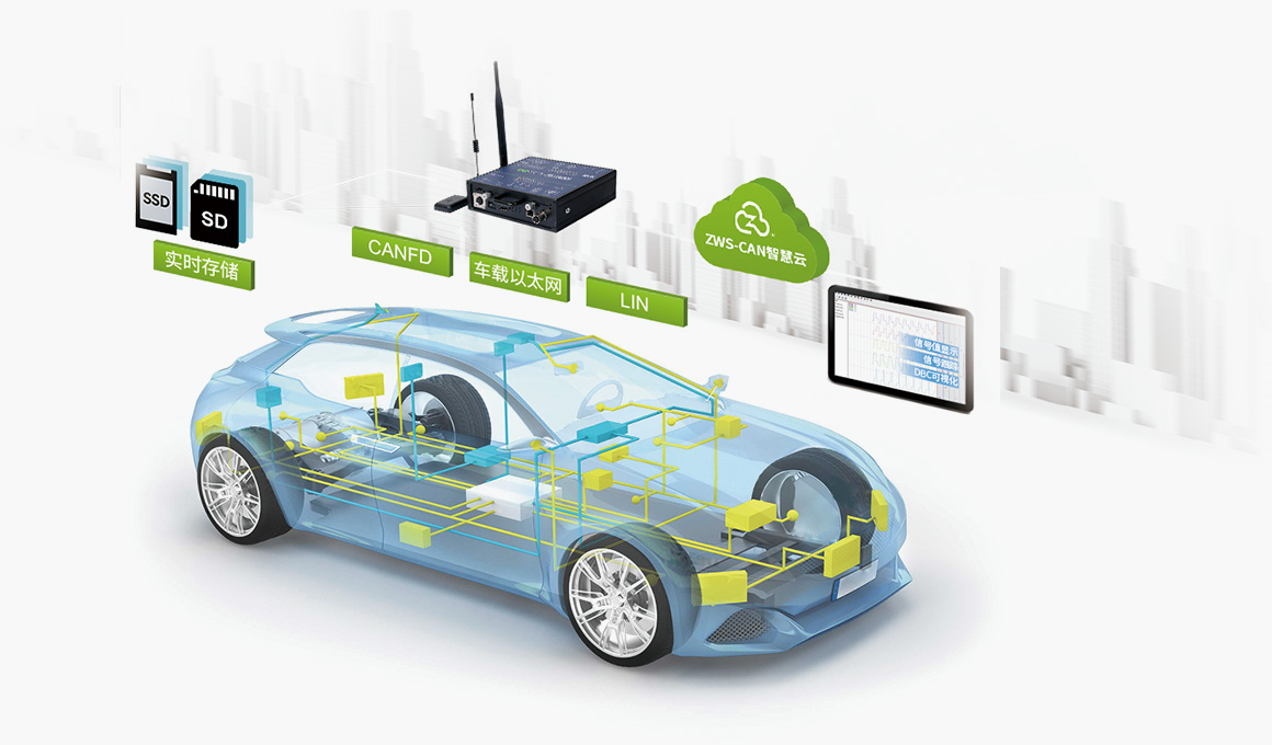 在整車熱平衡測試、發(fā)動機溫度檢測和電池溫度管理等整車測試項目中,往往需要一并采集各零部件控制單元(ECU)的CAN(FD) 通訊數(shù)據(jù)及其工作溫度,此時 CAN(FD)-bus 數(shù)據(jù)記錄終端搭配 ZAD 多通道無線溫度采集器即可實現(xiàn)此需求,數(shù)據(jù)可存至本地硬盤 /TF 卡,也支持通過 4G/WIFI 等無線方式傳至pc,滿足用戶終端的大數(shù)據(jù)處理。
